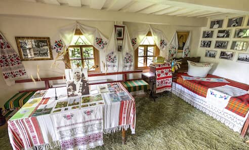 Автентична українська хата, що зберегла свої стіни у первинному стані. Вона була подарована у власність музею Анастасією, донькою Козловського, за участі Артура Уманського. В її стінах зберігаються роботи учасників художнього пленеру «Мар'янівська пастораль», що був проведений на території музею з нагоди 110-ї річниці з дня народження І. С. Козловського.